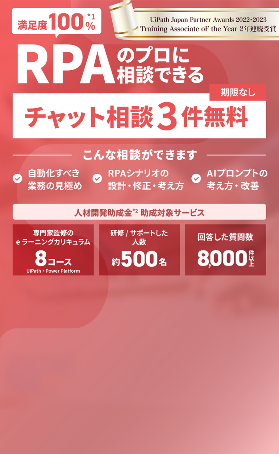 現場経験豊富なサポーターが、あなたのビジネス課題に寄り添いながら、RPA・AIの導入効果が最大化されるようにサポートいたします。